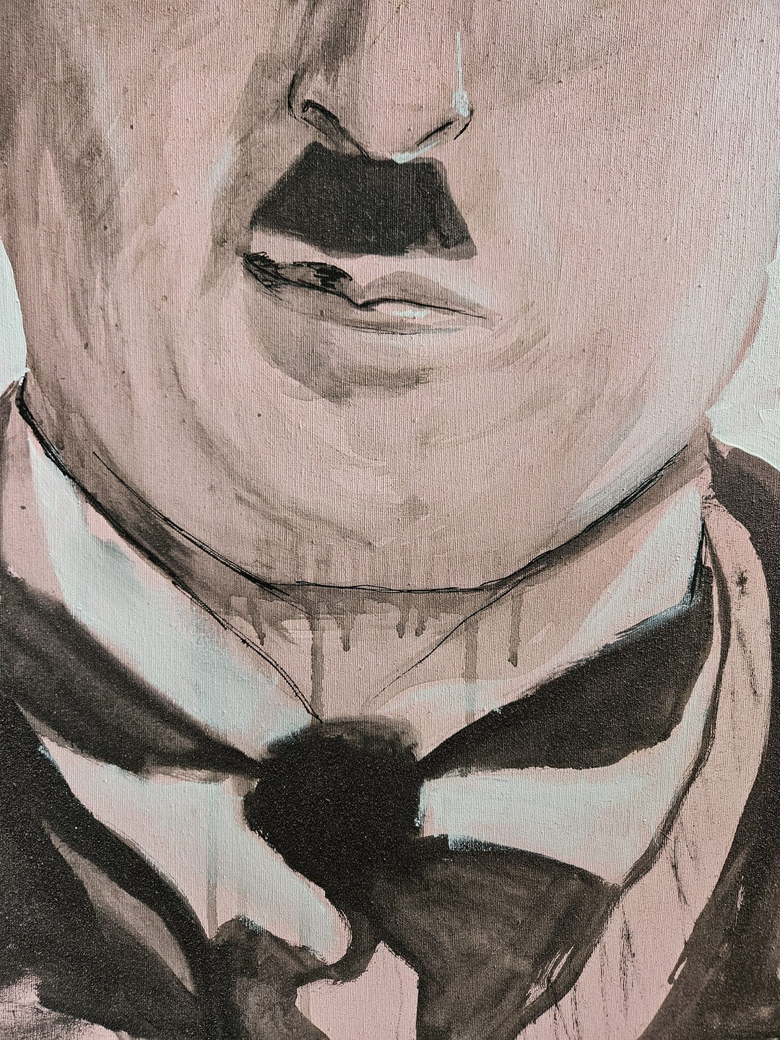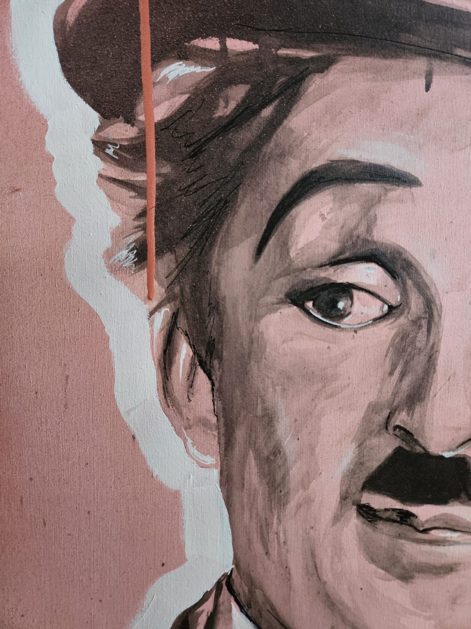 En Sonríe, Chaplin aparece con acrílico y spray para decir algo simple: sonreír sostiene todo. Mezclo pulso clásico con energía urbana para quedarme con lo importante: una sonrisa a tiempo hace la vida más ligera.
